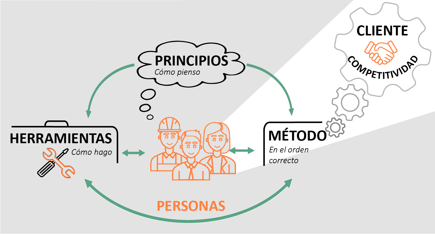 Siempre con el foco en el cliente, se basa en la sistemática búsqueda y eliminación del derroche en los procesos.